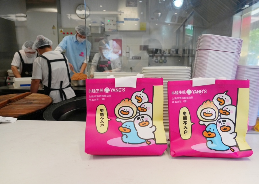 10月31日,上海市消防救援总队水上支队联合上海知名餐饮品牌“小杨生煎”,将电动自行车火灾防范要点印在外卖袋上,把消防安全知识送进千家万户。